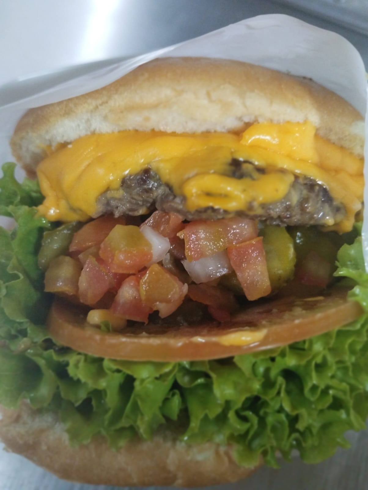 Pão, Hambúrguer De Costela 180g, Queijo Cheddar, Bacon, Alface, Tomate, Pepino, Vinagrete